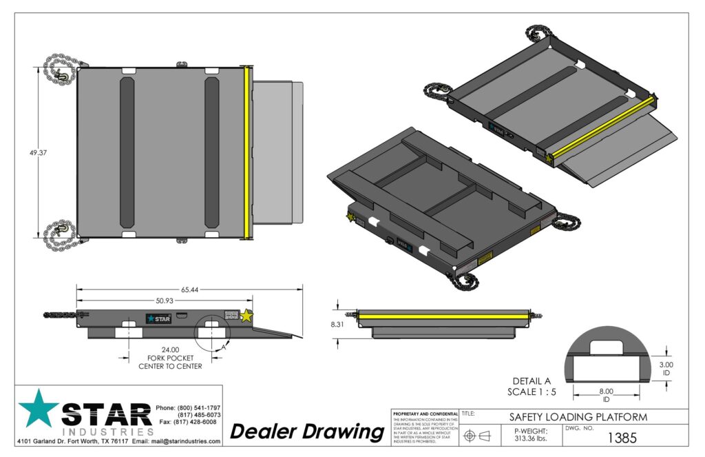 The Star Industries Safety Loading Platform is an attachment needed in every rental yard. Simply slide it on to the forks and one person can effortlessly load and unload heavy and awkward rental equipment quickly and safely.- Fixed 15” Ramp for easy loading