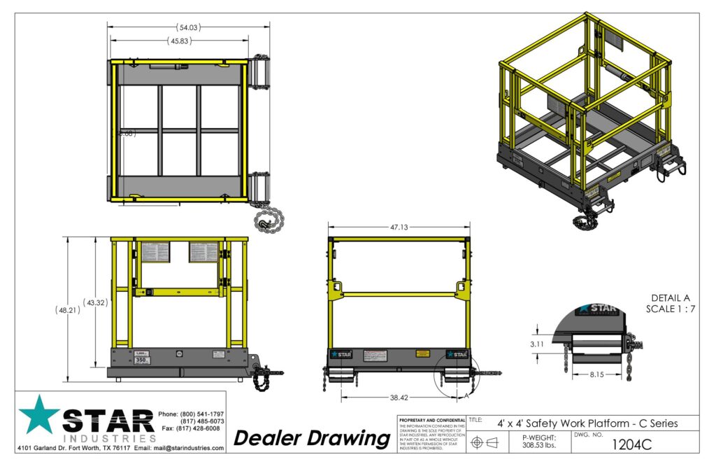 Turn your forklift into an aerial work platform and safely go where scissor lifts can’t with a Star Industries Safety Work Platform.