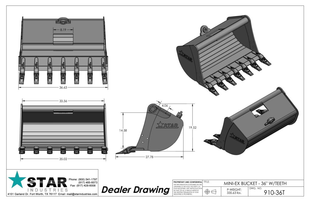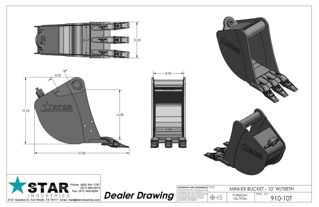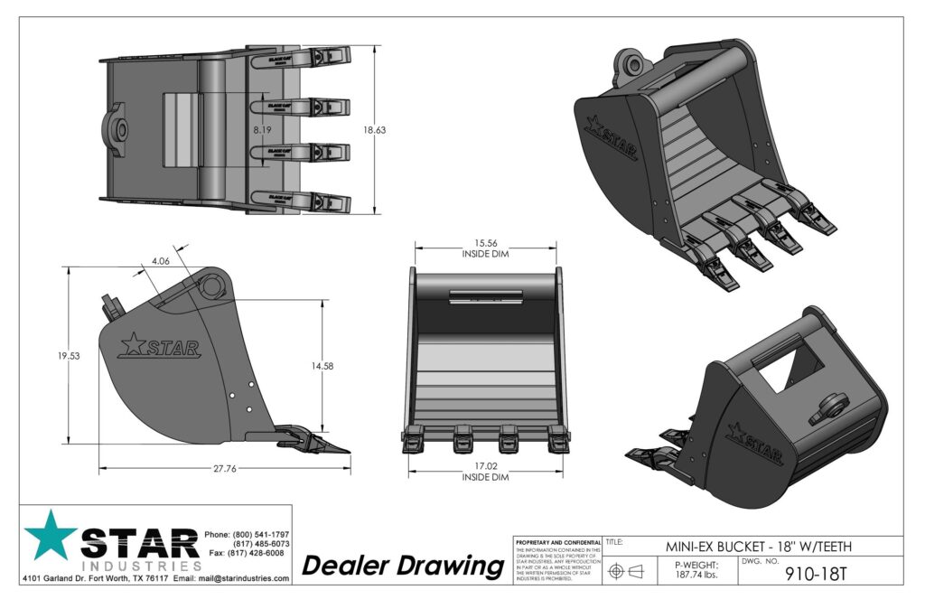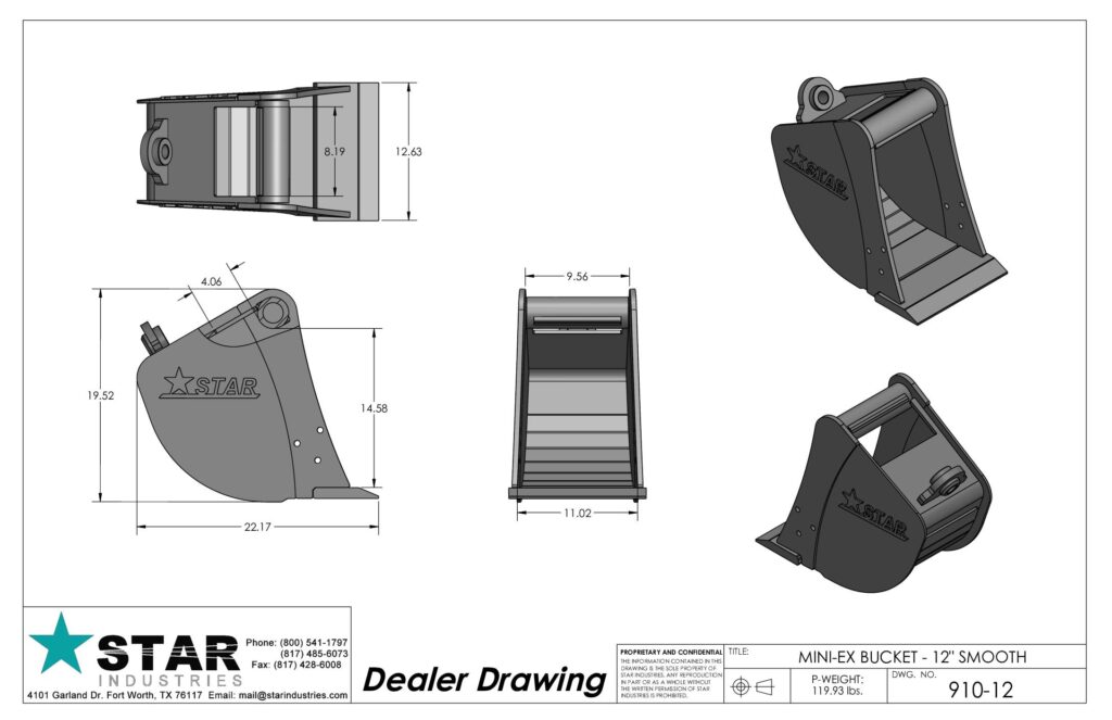 The Star Industries Mini Excavator bucket is specifically designed to work with almost all machines. It features superior design, unmatched strength and durability to give you the long life and performance you come to expect from Star.- Each bucket is engineered with tapered side plates to reduce wear on the bucket sides, and to allow for easier dumping.