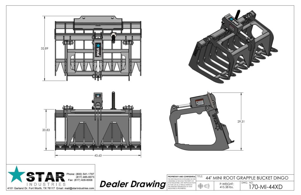 Move bulky, hard-to-handle materials like brush and logs easily with a Star Industries Mini Root Grapple or Grapple Bucket.