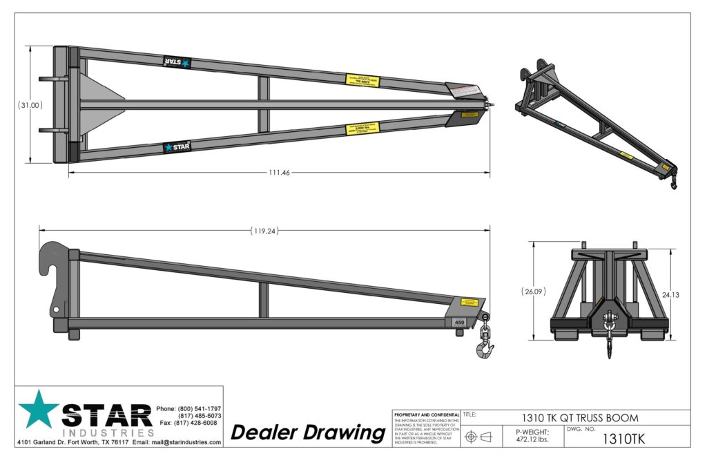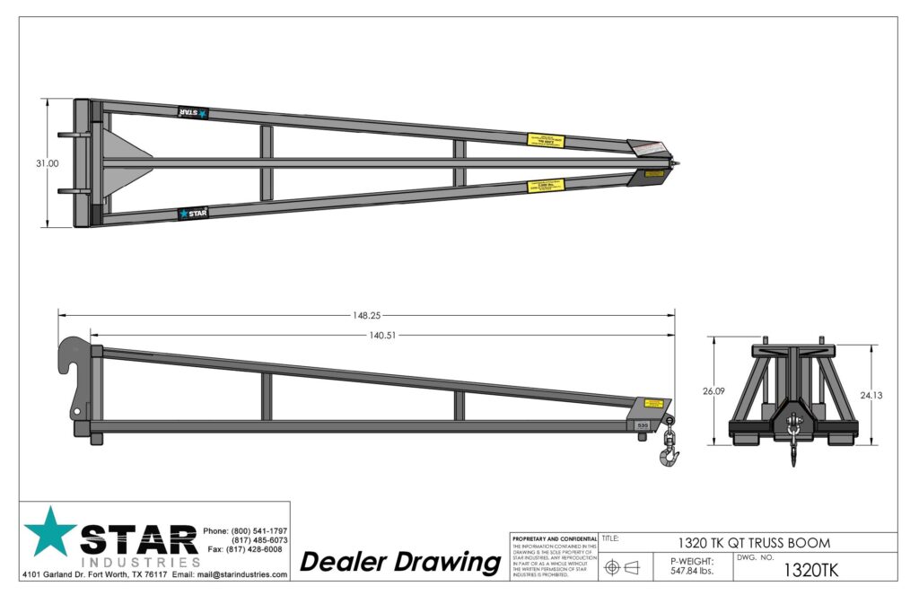 Save the cost of an expensive crane with a Star Industries Quick Tach (QT) Truss Boom.